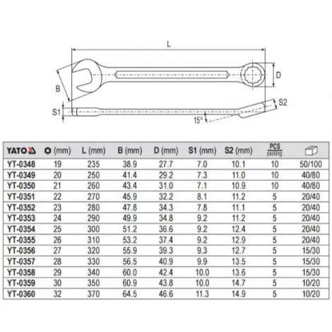 YT-0351 COMBINATION SPANNER, POLISHED HEAD 22 MM