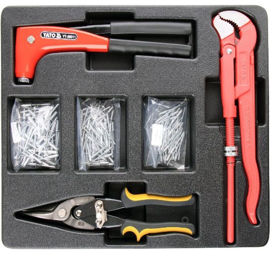 Yato YT-55478 Drawer Insert with Hand Riveter, Rivets Snip and Wrench 6 Pieces